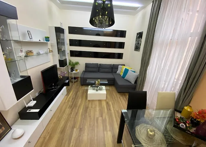 Es gibt in diesem Apartment auch eine komplette Küche, die mit einer Mikrowelle, einer Kaffee-/Teemaschine und Küchenutensilien ausgestattet ist. Die Gäste dieses Apartments können den Komfort von Ausstattung zur Kaffee- & Teezubereitung genießen. Die nahe gelegene Athene und Olio D'oliva sind in 5 Minuten zu Fuß zu erreichen. Der Flughafen Sofia liegt 15 km entfernt, während die Bushaltestelle Tsentralni Hali 250 Meter von diesem 56 m^2 großen Apartment entfernt ist.